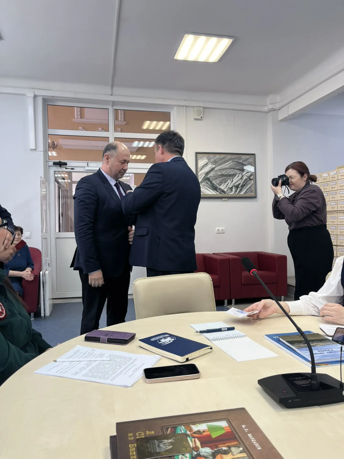 Марат Хамитьянович вручил удостоверение члена Российского исторического общества Марату Минигалеевичу Зулькарнаеву и подарил ему свою книгу «Легенды спецслужб из Башкирии». Второй экземпляр этой книги был вручён члену Совета Общества краеведов РБ, директору АНО ПРОКИ «Центр межкультурного партнёрства» Валентине Владимировне Латыповой.