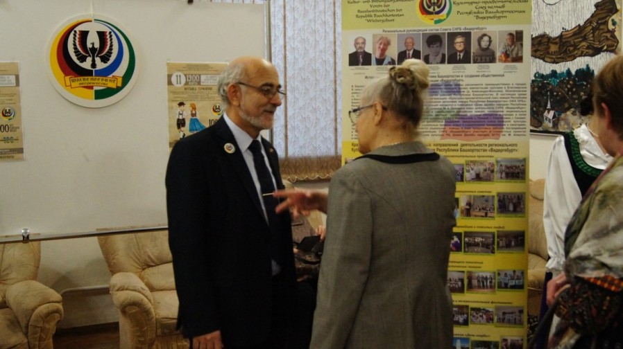 в конференц-зале «НУР» состоялось открытие рабочей встречи руководителей и активистов общественных организаций российских немцев региона Поволжья и Юго-Запада Р.Ф. На открытии этого межрегионального культурно-просветительского проекта российских немцев присутствовали от Республики Башкортостан со словами приветствия: заместитель начальника управления Главы Республики Башкортостан по общественно-политическому развитию, заведующая отделением по реализации национальной политики Ялчикаева Гуллярия Рафкатовна и директор Дома дружбы народов Республики Башкортостан Султанмуратов Ильгиз Замфирович. В ходе рабочей встречи Гуллярия Рафкатовна зачитала приветственное письмо от управления Главы Республики Башкортостан и поблагодарила Союз немцев Республики Башкортостан «Видергебурт» за долгую 30-летнюю работу в сфере этнокультурной деятельности на благо процветания Республики Башкортостан и поддержание политики толерантности