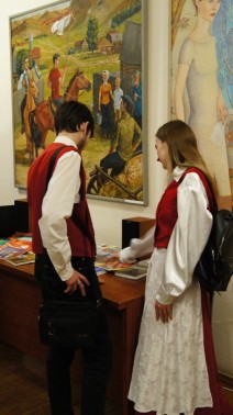В фойе зала им. Ф.И. Шаляпина института искусств силами СНРБ «Видергебурт» была организована выставка национальных поделок