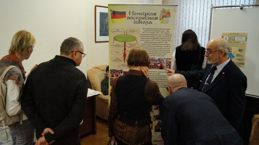 с помощью наглядных баннеров сделал презентацию 30-летней деятельности «Культурно-просветительского Союза немцев Республики Башкортостан «Видергебурт», рассказал о совместной работе СНРБ «Видергебурт» с воскресной немецкой школой в городе Уфе на базе Гимназии № 86.