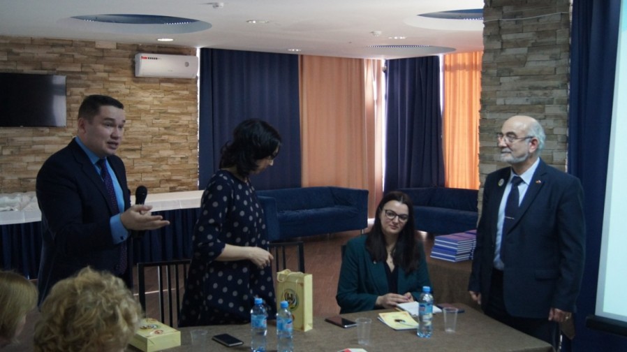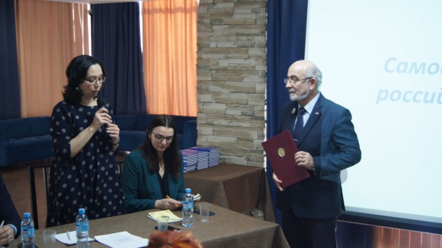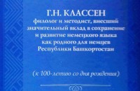 и экземпляром книги «Г.Н.Классен филолог и методист, внесший значительный вклад в сохранение и развитие немецкого языка как родного для немцев Республики Башкортостан».