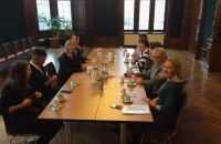 27 октября башкирская делегация продолжила свое турне в Баден-Вюртемберг. В Государственном институте музыки и исполнительского мастерства г. Штутгарт, в Сенатском зале вуза был организован круглый стол «Диалог во имя будущего: обсуждение по вопросам дальнейшего сотрудничества» в формате «Meetingpoint».В работе Круглого стола приняла участие еще одна башкирская делегация, которая приехала в Германию по приглашению лечебно-трудовых мастерских г.Эслинген и инклюзивного театра «ДиРапсоден» г. Штутгарт под руководством немецкого режиссера Акселя Клессле. Кстати, именно участники инклюзивного театра из Салаватского колледжа образования и профессиональных технологий и Республиканской клинической психиатрической больницы МЗ РБ стали первыми организаторами Круглого стола в формате «Meetingpoint» через скайп. По завершению Круглого стола состоялись мастер-классы профессоров вуза Аннегрет Мюллер по искусству сценической речи и Ганс-Петер Штенцля по классу фортепьяно.