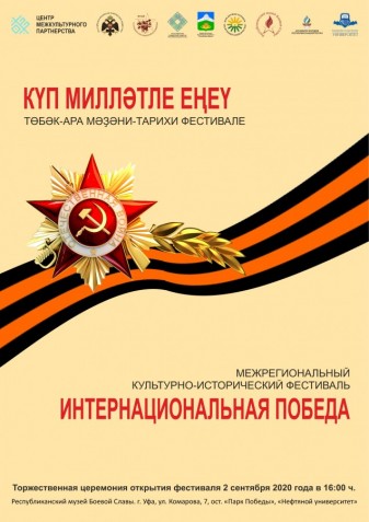 Открытие Межрегионального культурно-исторического фестиваля «Интернациональная Победа», посвященного 75-летию Победы в Великой Отечественной войне 1941-1945 гг. состоится 2 сентября 2020 г. в 16-00 час. по адресу: г. Уфа, ул. Комарова,7, Республиканский музей Боевой Славы. Остановка общественного транспорта «Парк Победы». Телефон для справок: 8-917-781-84-91