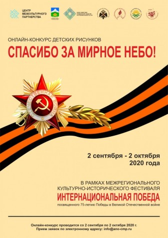 Онлайн-конкурс детских рисунков «Спасибо за мирное небо!», посвященный 75-летию Победы в Великой Отечественной войне, прошел со 2 сентября по 2 октября 2020 года в рамках Межрегионального культурно-исторического фестиваля «Интернациональная Победа», проводимого в ходе реализации гранта Главы Республики Башкортостан на развитие гражданского общества.