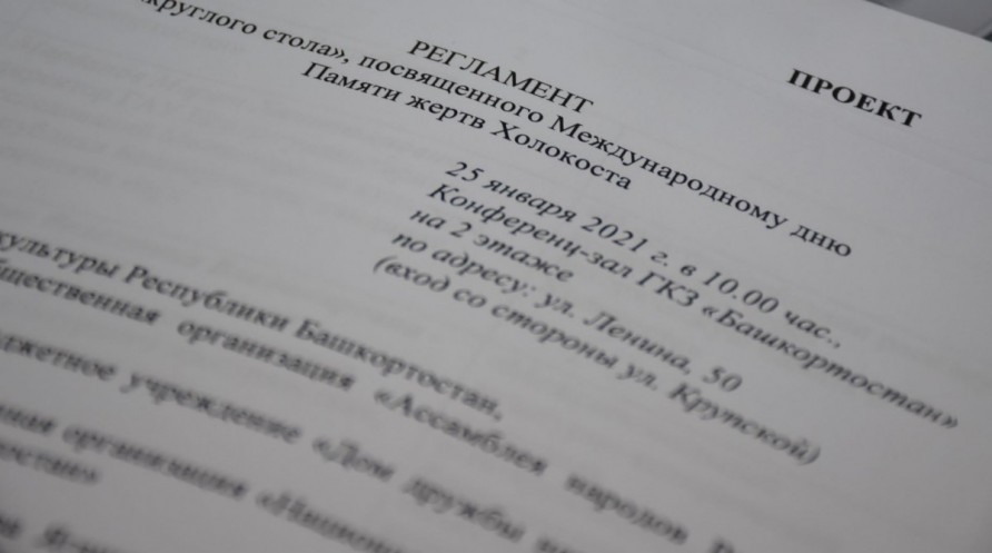 Круглый стол, посвященный Международному дню памяти жертв Холокоста, прошел 25 января 2021 г. в очно-заочном формате в Конференц-зале ГКЗ «Башкортостан». Организаторами выступили Министерство культуры РБ, ГБУ Дом дружбы народов РБ, РОО «Ассамблея народов Башкортостана» и РОО национальной еврейской культуры «Кохав» РБ.