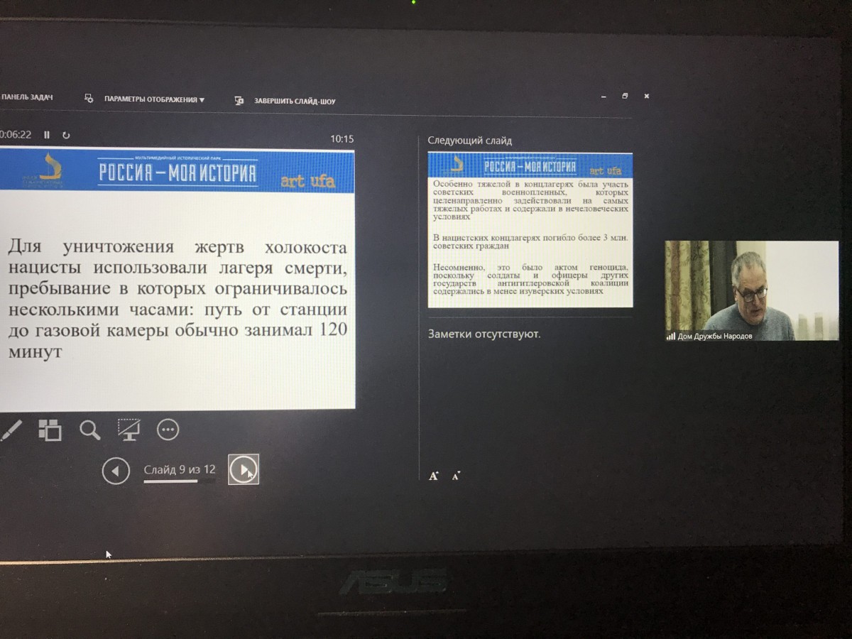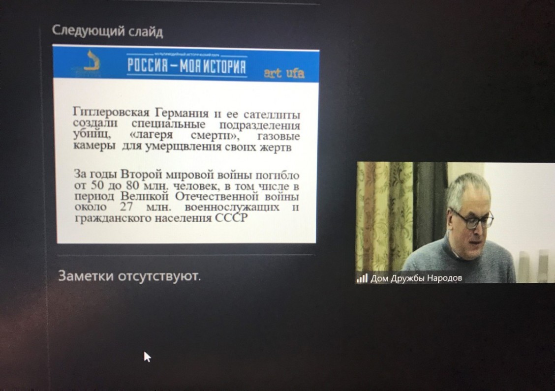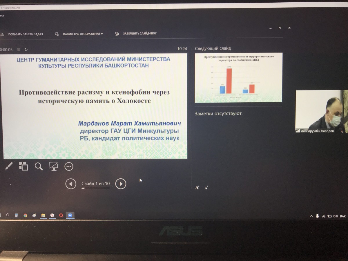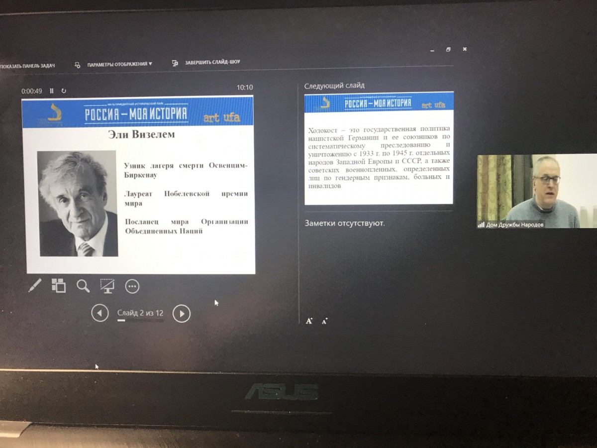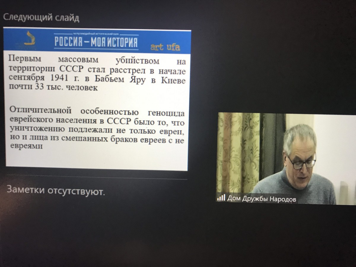 Первый заместитель министра культуры РБ Наталья Лапшина открыла заседание на платформе Zoom, напомнив о мероприятиях проводимых в Башкортостане в рамках Недели памяти жертв Холокоста.