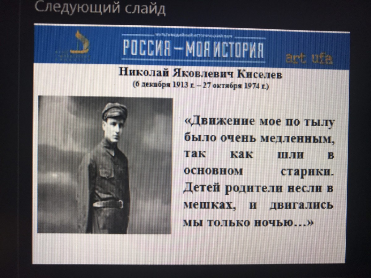 «Звания Праведник народов мира было удостоено 27212 человек по всему миру, из них 215 человек Российской Федерации. Но самым известным, несомненно, является Николай Киселев – уроженец Уфимской губернии», – рассказал Алексей Олегович и призвал подумать о том как еще можно увековечить имя нашего земляка.
