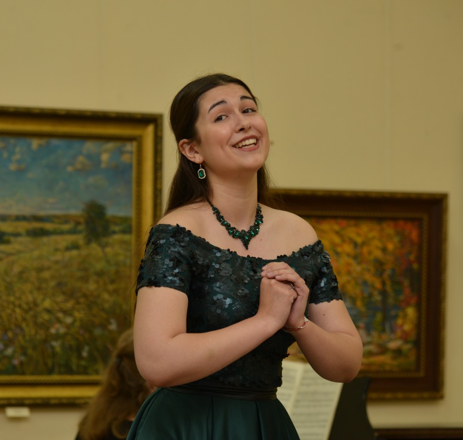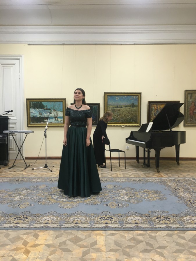 Музыкальную часть гостиной открыла студентка Уфимского колледжа искусств (класс преподавателя заслуженного работника культуры Республики Башкортостан Садыковой Риммы Рушановны) и концертмейстер Надежда Латипова. В их исполнении прозвучала песня Фридерика Шопена «Желание» («Życzenie») на слова Стефана Витвицкого.