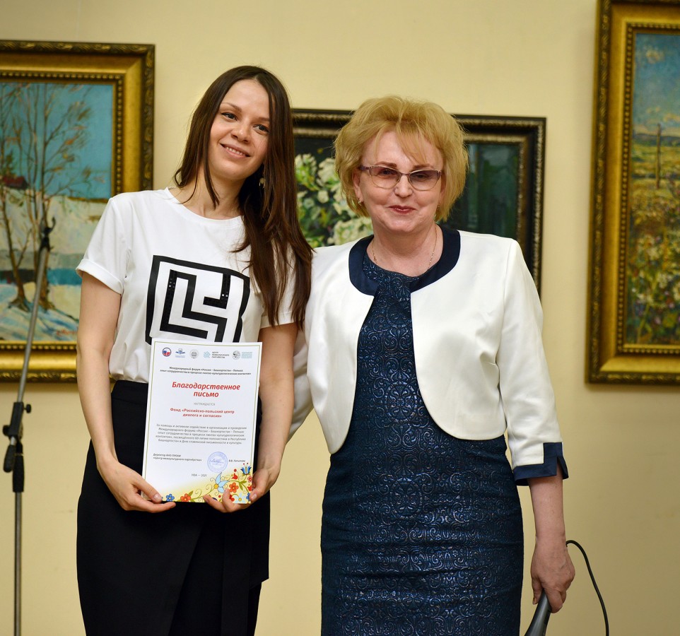 Директор Автономной некоммерческой организации по развитию общественно-культурных инициатив «Центр межкультурного партнёрства» Валентина Латыпова рассказала о проведенном с 20 по 22 мая 2021 года Международном форуме «Россия – Башкортостан – Польша: опыт сотрудничества в процессе лингво-культурологических контактов» посвященном 60-летию полонистики в Республике Башкортостан и Дню славянской письменности и культуры и сердечно поблагодарила Фонд «Российско-польский центр диалога и согласия» за поддержку проекта.