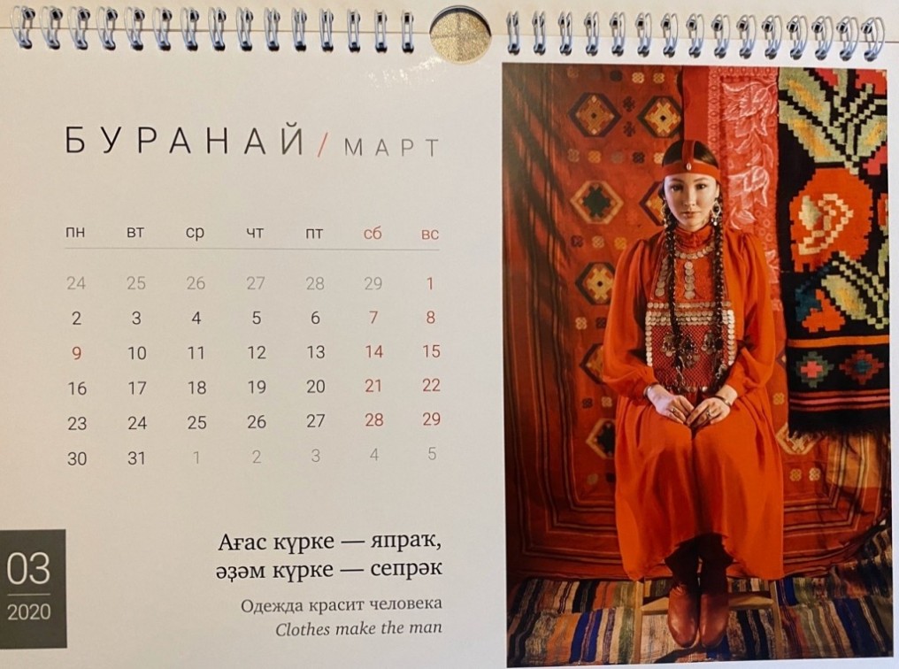 - в календаре пословиц приведены башкирские народные пословицы и их эквиваленты из русского и английского языков. Календарь начинается с марта, с народного дня нового года Науруз. Проект посвящен Всемирной Фольклориаде.