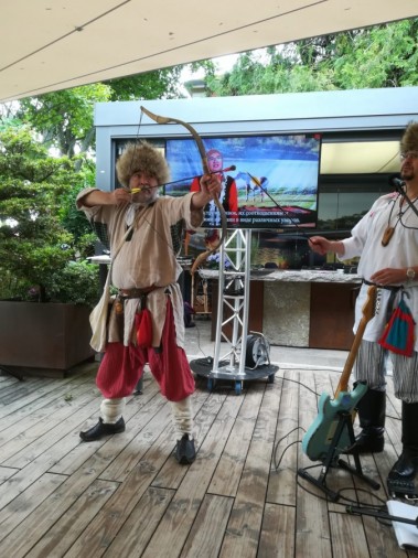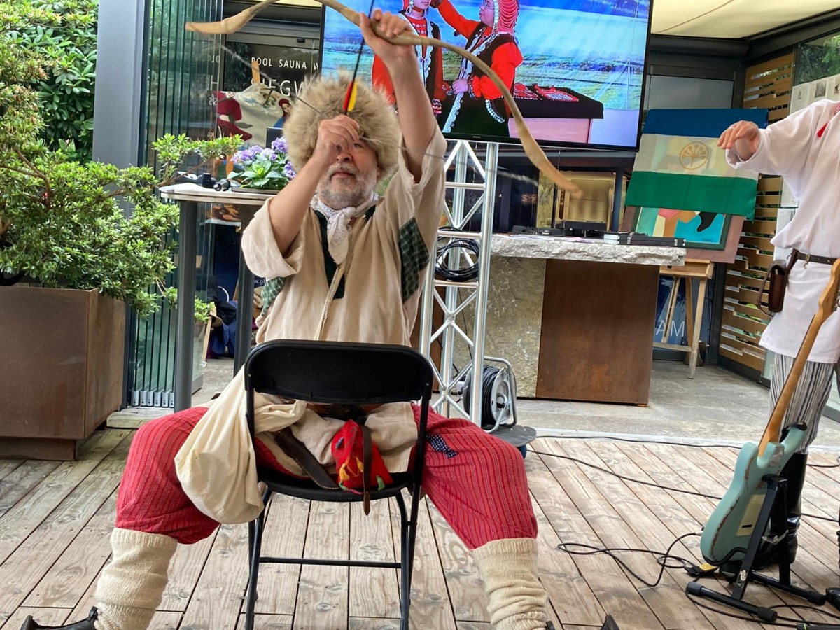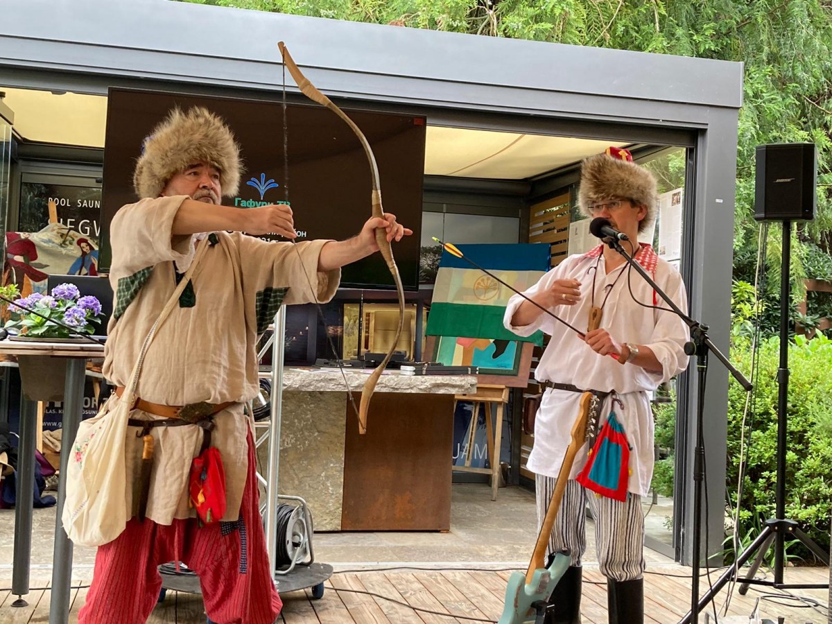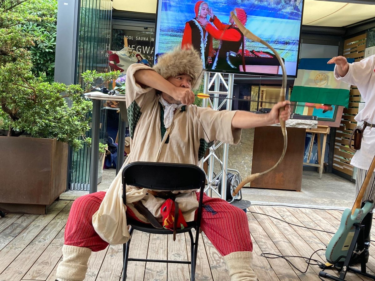 Мастер-класс стрельбы из национального лука показал наш соотечественник, известный художник, активный участник военно-исторических реконструкций, многие годы проживающий в Польше, Азат Кужин.