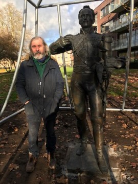 2. Beeldhouwer Alexander Taratynov naast zijn schepping van Generaal Alexander von Benckendorff Beeldhouwer Alexander Taratynov naast zijn schepping van Generaal Alexander von Benckendorff.
