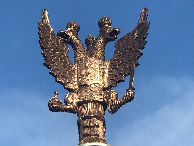 5. Generaal Alexander von Benckendorff, portret door George Dawe en bekroning van de tentconstructie van het monument met dubbele adelaar, Tsaar Alexander I periode.
