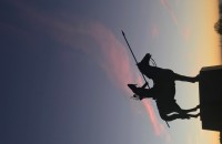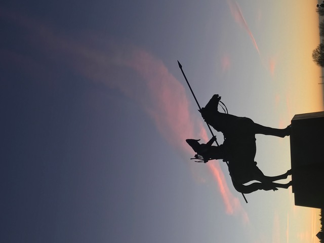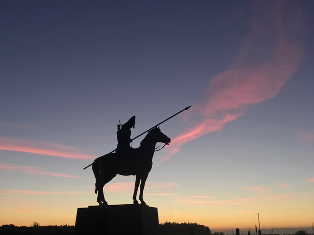 «Am Abend, hat die Sonne noch rosa Streifen hinterlassen um unseren Bashkirischen Reiter bis in die Nacht zu begleiten.