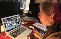 Beeldregisseur Hannah Buisman switchte van spreker naar spreker en zorgde ervoor dat het webinar tussen de continenten technisch vlekkeloos verliep