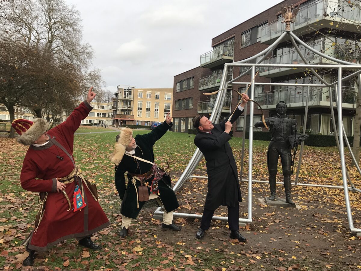 1. Башкирские лучники у конной статуи в Вессене, фото: Анри ван дер Бик для De Stentor, 27-11-2021