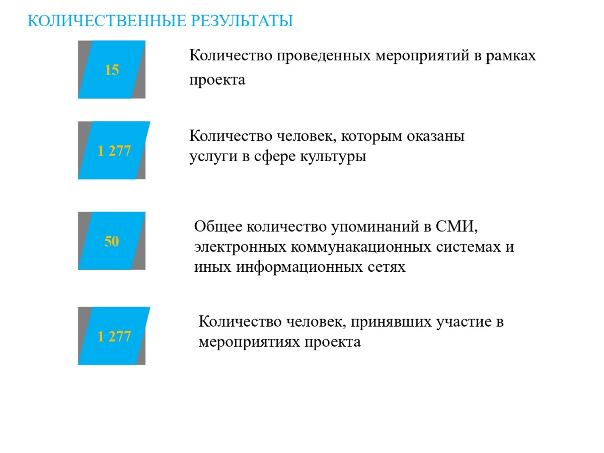 Утверждены списки проектов-победителей первого специального конкурса 2022 года на предоставление грантов Президента Российской Федерации на реализацию проектов в области культуры, искусства и креативных (творческих) индустрий. За неделю заявочной кампании в системе начали оформлять заявки свыше 1800 творческих команд, из них полностью завершены и направлены в Фонд на рассмотрение экспертам 774 заявки из 72 регионов России. По итогам независимой экспертной оценки проектов поддержку получат 32 инициативы из 19 регионов России: Москвы, Белгородской, Нижегородской, Рязанской, Курганской, Тамбовской, Тульской, Новосибирской, Ростовской, Тюменской, Ивановской, Архангельской, Псковской областей, Санкт-Петербурга, Удмуртской Республики, Пермского края, Хабаровского края, Республик Башкортостан и Татарстан.
