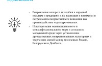 - Возрождение интереса молодёжи к народной культуре и традициям и их адаптация к интересам и потребностям подрастающего поколения как противодействие "культуре отмены"