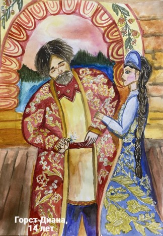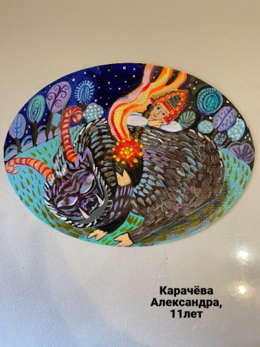 Короткая Алина, 12 лет, г.Ясиноватая Донецкая Народная Республика Начальное специализированное учебное заведение искусств «Ясиноватская школа искусств». Авторское название работы «Теплые вечера с ключницей Пелагеей». Руководитель – Петрякова Альбина Валериевна;