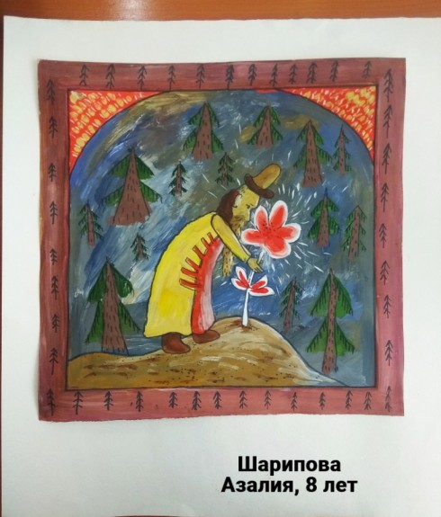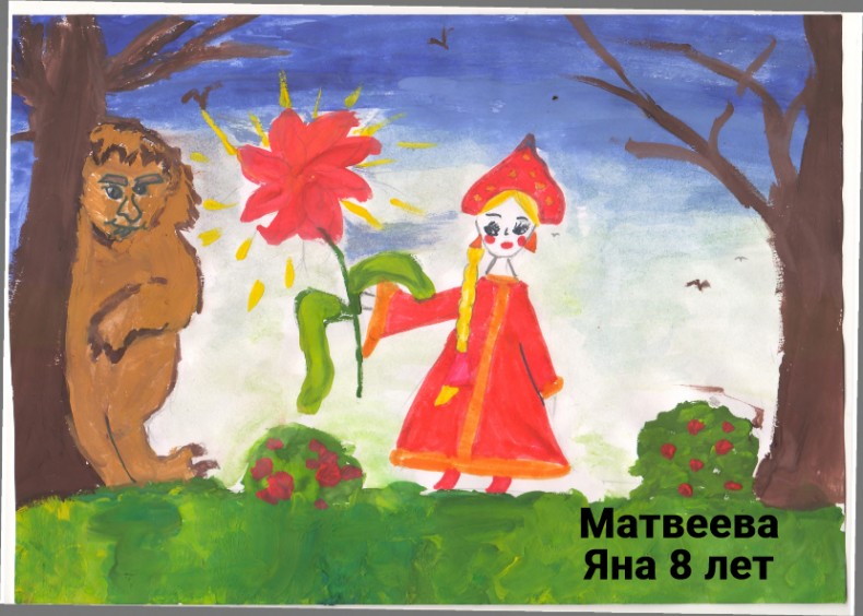 Матвеева Яна, 8 лет, с.Крымская Роза Белогорский район Республика Крым МБОУ «Крымрозовская СШ». Авторское название работы «Аленький цветочек в лесу». Руководитель – Кизименко Ольга Александровна, учитель начальных классов;