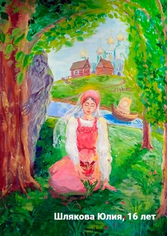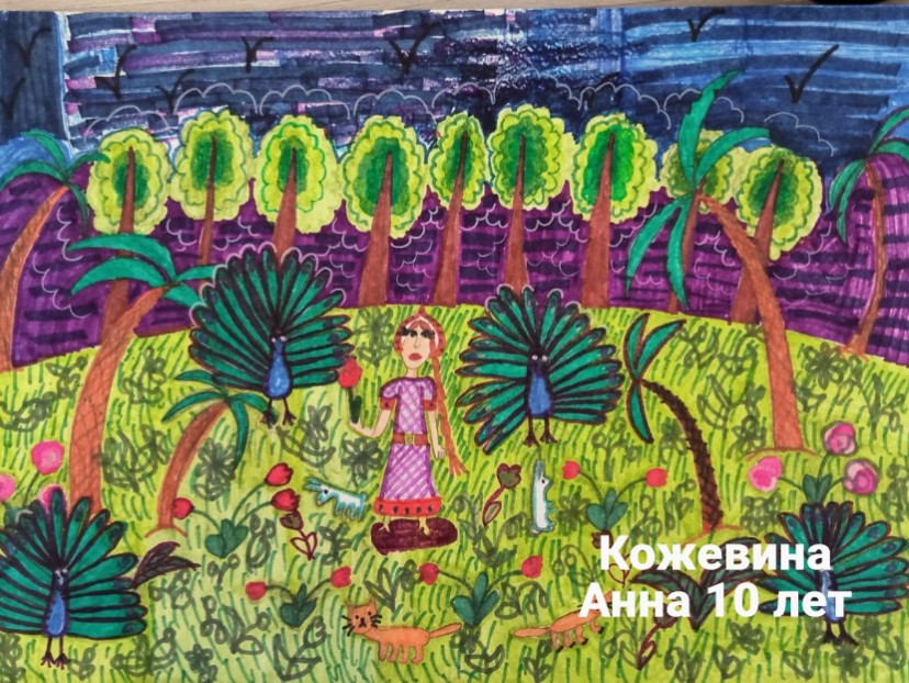 Кожевина Анна, 10 лет, г.Суздаль Владимирская область МБУ ДО «ЦДО «Исток», СОШ № 1. Авторское название работы «Настенька в дивном саду». Руководитель – Винниченко Оксана Николаевна.