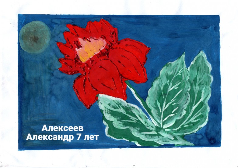 Алексеев Александр, 7 лет, г.Чебоксары Чувашская Республика МБДОУ «Детский сад № 21». Авторское название работы «Цветок для чудовища». Руководитель – Михайлова Татьяна Николаевна;
