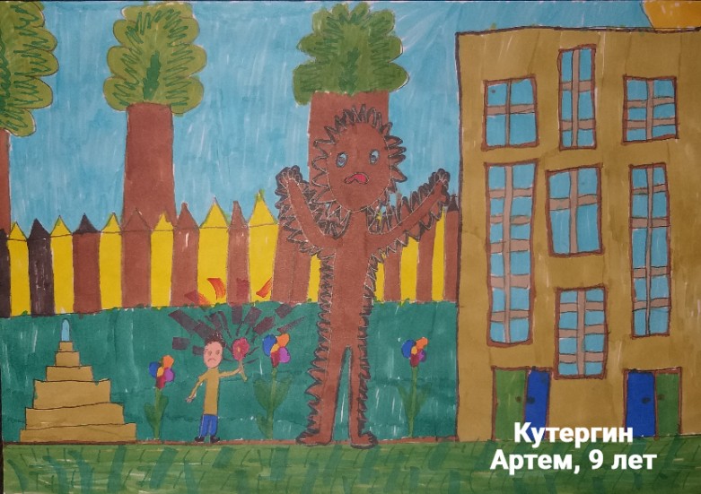Валеева Олеся, 7 лет, г.Глазов Удмуртская Республика МБУ ДО «Детская художественная школа». Авторское название работы «Чудище». Руководитель – Сидорова Полина Денисовна;
