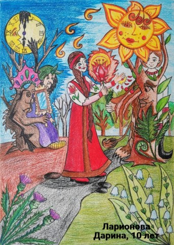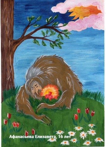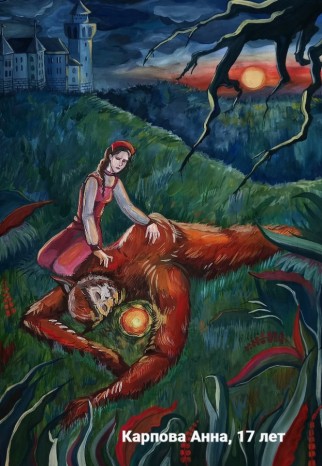 Павлюшина Кристина, 9 лет, Республика Коми МОУ «Гимназия» Коми национальная гимназия. Авторское название работы «Настенька у чудища». Руководитель – Белякова Екатерина Дмитриевна;