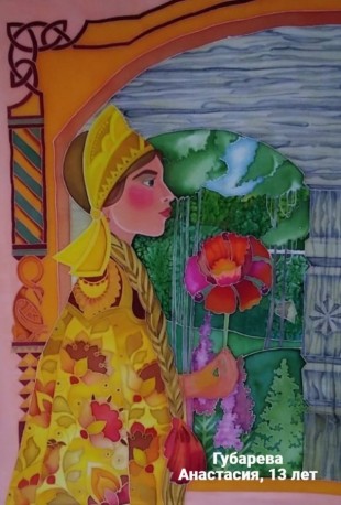 Губарева Анастасия, 13 лет, г.Ростов-на-Дону МБУ ДО ДДТ Железнодорожского района Детское объединение «Батик». Авторское название работы «Долгожданный цветочек». Руководитель – Белянова Наталья Геннадьевна;