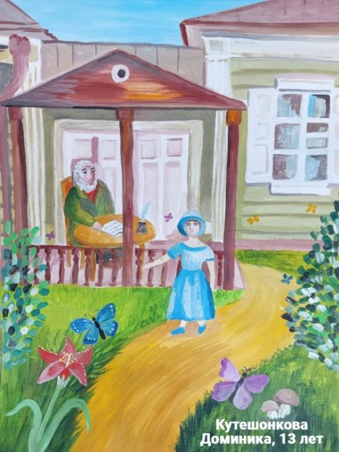 Горохова Софья, 14 лет, г.Смоленск МБУДО «Детская художественная школа им.М.К.Тенишевой». Авторское название работы «С.Аксаков в таинственном саду или Вдохновение писателя». Руководитель – Семченкова Мария Игоревна;