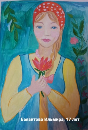 Баязитова Ильмира, 17 лет, с.Кармаскалы Кармаскалинский район Республика Башкортостан МАУ ДО «Детская школа искусств». Авторское название работы «Аленький цветочек». Руководитель – Батталова Фируза Бакиевна;