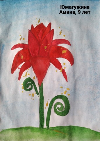 Юмагужина Амина, 9 лет, г.Уфа Республика Башкортостан Башкирская гимназия № 158 имени Мустая Карима. Авторское название работы – «Волшебный цветок». Руководитель – Юмагужина Лейсан Рафиковна.