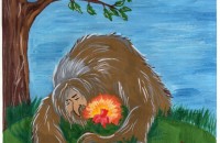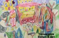 Гильманов Булат, 8 лет, г.Уфа Республика Башкортостан МБУ ДО «Детская художественная школа № 2». Авторское название работы «Неожиданная встреча». Руководитель – Ибатуллина Элиза Мухаматовна.