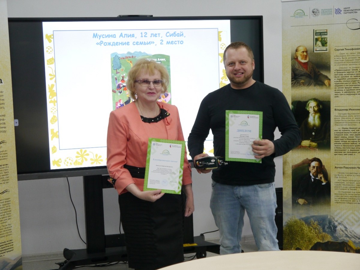 Директор Национальной библиотеки им.А.-З.Валиди РБ Марат Зулькарнаев и директор Автономной некоммерческой организации по развитию общественно-культурных инициатив «Центр межкультурного партнёрства» Валентина Латыпова наградили участников от Республики Башкортостан.