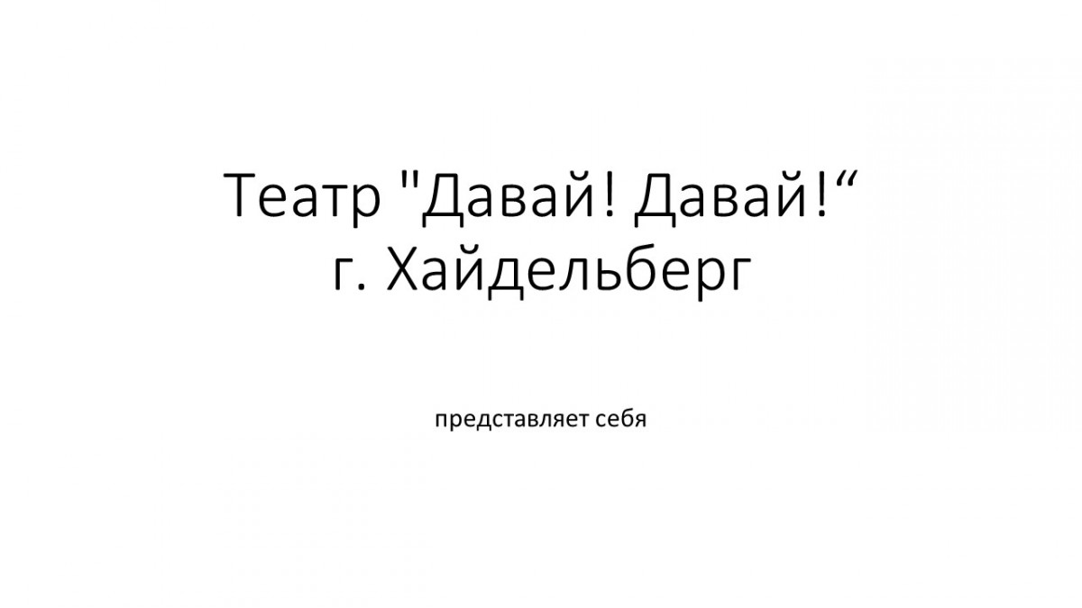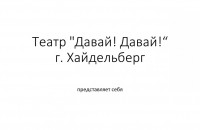 Презентация немецкого любительского театра «DAWAI! DAWAI! – THEATR HEIDELBERG» («Давай! Давай! - Театр Гейдельберг Германия»), пропагандирующего произведения А.П.Чехова в Германии