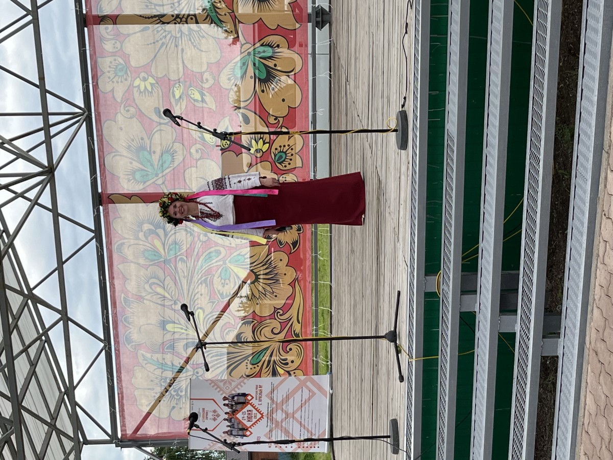 На площади СКЦ с.Красный Яр была представлена яркая празднично-игровая программа с музыкальными выступлениями и молодежными квестами. Выступает солистка народного ансамбля украинской песни "Зоряний свiт" Стерлитамакский район, с. Золотоношка Шишкина Ольга: "Мiй край".