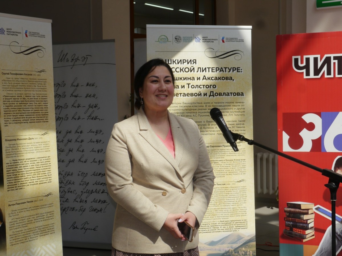 На церемонии торжественного открытия Международного литературно-театрального фестиваля «Русский мир Башкортостана представляет..», проведенного 24 мая 2022 года при содействии Президентского фонда культурных инициатив, выступила начальник отдела Министерства культуры Республики Башкортостан Айгуль Хасанова.