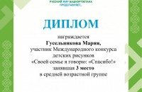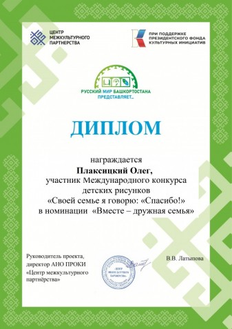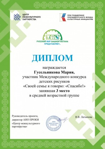 В рамках Международного литературно-театрального фестиваля «Русский мир Башкортостана представляет…» при поддержке Президентского фонда культурных инициатив прошли два международных конкурса рисунков: «Подарок внучке Оленьке – сказка «Аленький цветочек» по мотивам сказки С.Т. Аксакова и «Своей семье я говорю: «Спасибо!», в каждом из которых приняло участие более 1000 участников из регионов Российской Федерации и зарубежных стран.