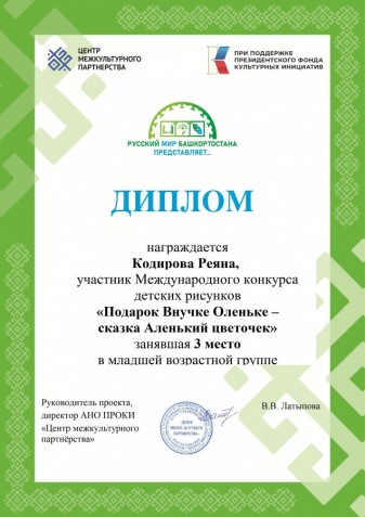 Победители международных конкурсов рисунков «Подарок внучке Оленьке – сказка «Аленький цветочек» по мотивам сказки С.Т. Аксакова и «Своей семье я говорю: «Спасибо!» из Республики Крым награждены дипломами и ценными подарками