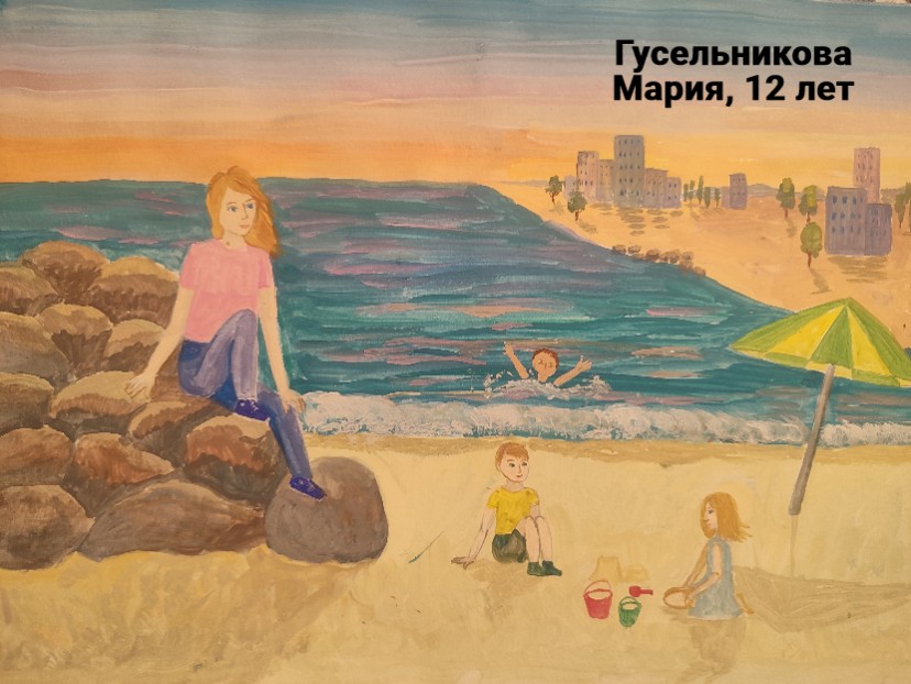 Гусельникова Мария, 12 лет, г.Симферополь Республика Крым МБОУ СОШ № 23. Авторское название работы «Семейная поездка к морю». Руководитель – Гусельникова Людмила Григорьевна.