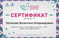 Директор Автономной некоммерческой организации по развитию общественно-культурных инициатив «Центр межкультурного партнерства» Валентина Латыпова приняла участие в "Большом этнографическом диктанте - 2022"