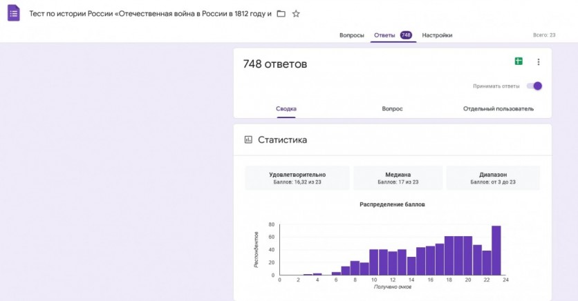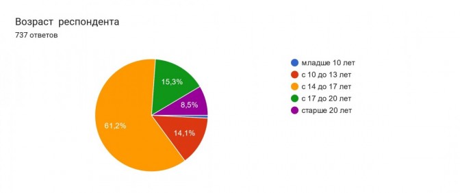 В тестировании по ссылке: https://docs.google.com/forms/d/1KYWIDeB722d2qy6N9whJ1cO5f0PLMQbuaMjiuI8sq0w/edit приняли участие 748 респондентов из России: учащиеся школ Гафурийского, Мелеузовского, Стерлитамакского и Уфимского районов, студенты Уфимского училища искусств (колледжа), Салаватского филиала ГБПОУ Уфимского колледжа индустрии питания и сервиса, Стерлитамакского педагогического института, а также желающие жители Республики Башкортостан и регионов России.
