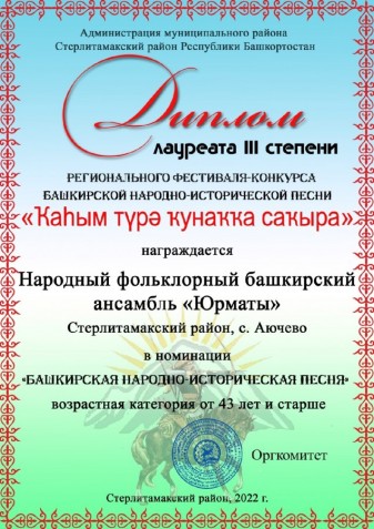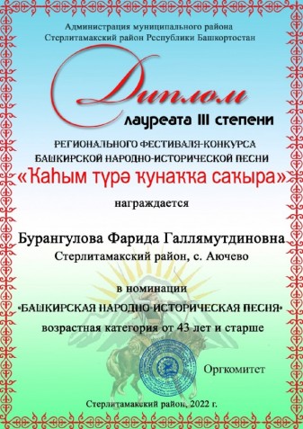 Подошел к завершению IV Региональный фестиваль башкирской народно-исторической песни «Ҡаһым түрә ҡунаҡҡа саҡыра», который прошел в режиме онлайн с 15 октября 2022 года по трем номинациям: Башкирская народно-историческая песня, инструментальное творчество и декоративно-прикладное искусство.