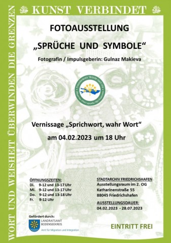 das Projekt „Kunst verbindet: Wort und Weisheit überwinden die Grenzen" mit der Fotoausstellung beginnt am Samstag, den 4. Februar 2023 und kann in den Räumen des Stadtarchives Friedrichshafen