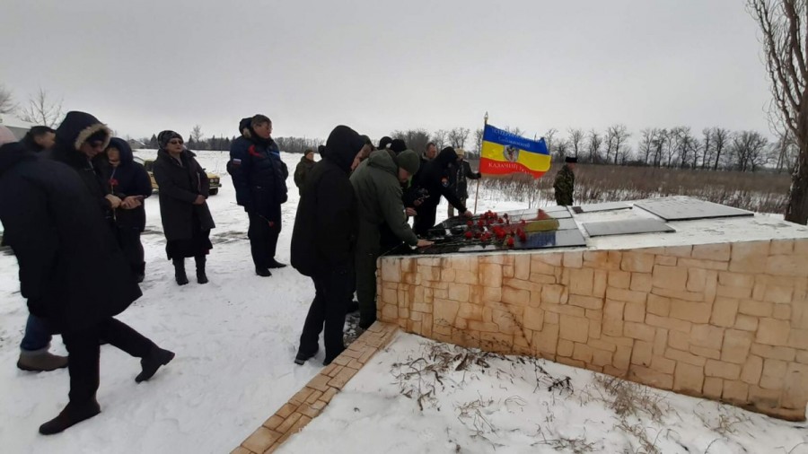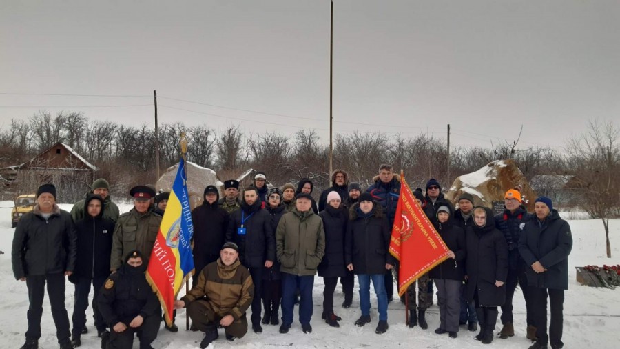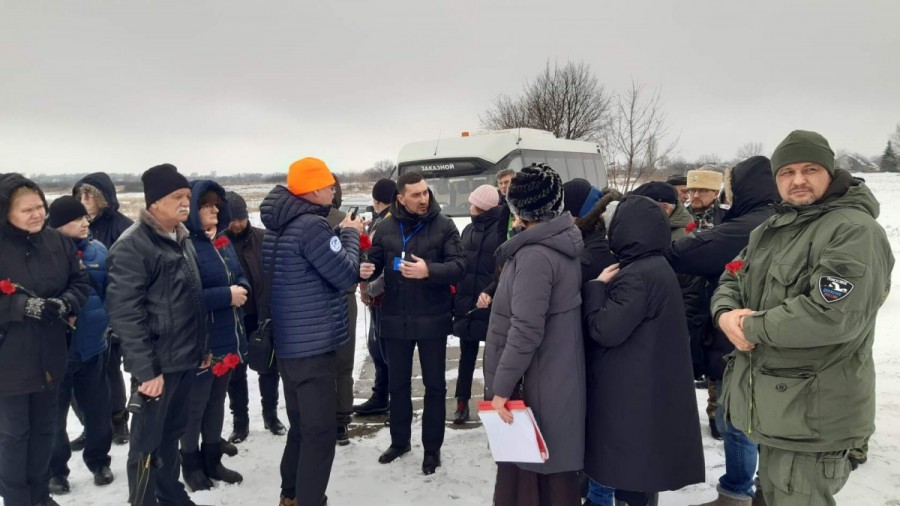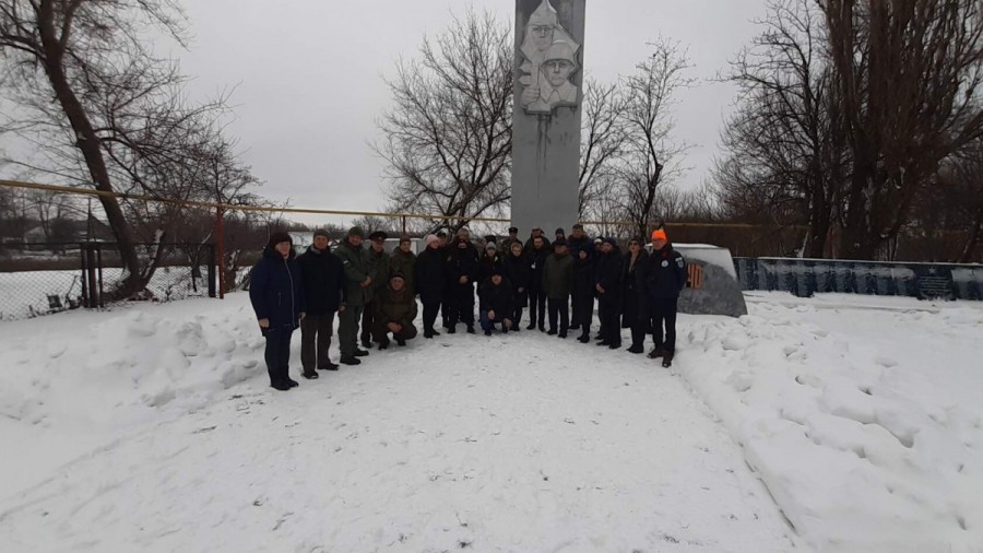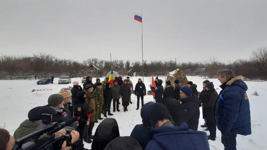 На историческом месте, где располагаются памятные знаки жертвам украинской агрессии и павшим героям Чернухино – Дебальцевской операции гостей поселка встретил начальник Отдела по обеспечению жизнедеятельности пгт Чернухино Афонин Г.В.,зав. филиалом «Чернухинский народный краеведческий музей им. Г.И.Иващенко» Афонина Н.Н., руководитель Алчевского городского поискового отряда имени Салавата Юлаева Карачурин Ф.С., представители казачества Перевальщины.