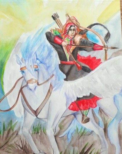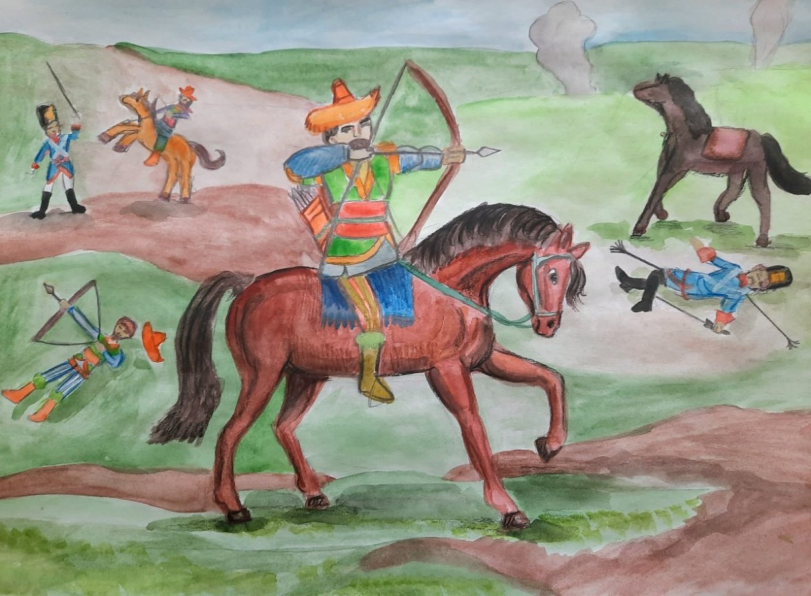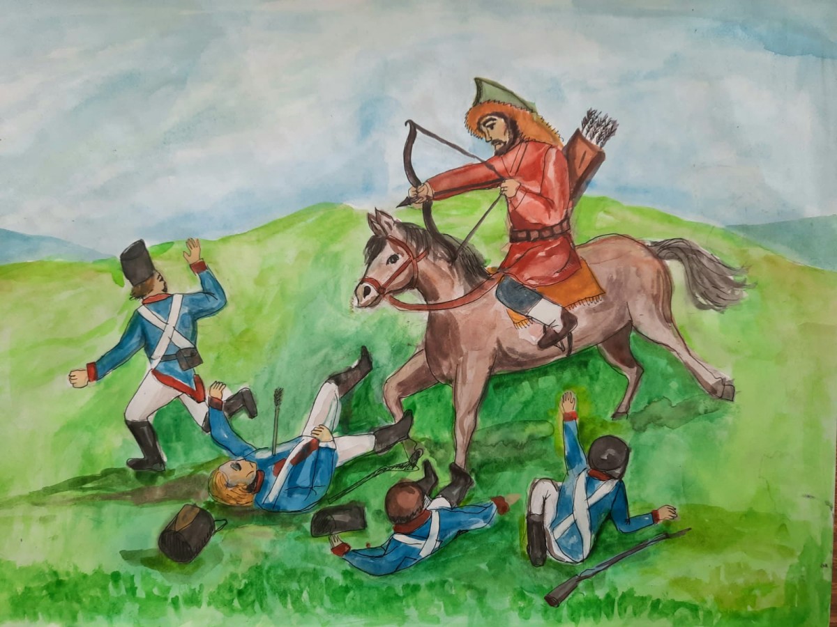 Чеботарева Мария 16 лет. Название работы «Башкирский воин» акварель, рук. Юферова Эльвера Мансуровна, МБУ ДО Нуримановская ДШИ.