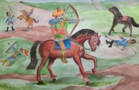 Багаутдинова Илона 12 лет Название работы «Башкирский лучник» акварель, рук. Юферова Эльвера Мансуровна. МБУ ДО Нуримановская ДШИ;