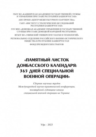 Издан сборник материалов международной научно-практической конференции «Памятный листок донбасского календаря: 365 дней специальной военной операции», посвященной годовщине начала специальной военной операции на Украине