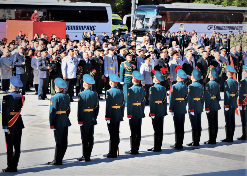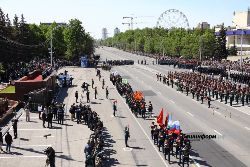 Незабываемым останется в памяти гостей из Донбасса их участие на Параде Победы в г.Уфе, В связи с объективными обстоятельствами торжественного шествия Бессмертного полка с фотографиями защитников Отечества в этом году не было. Однако делегации Донецкой и Луганской Народных Республик присутствовали на Параде Победы рядом с почетными гостями – ветеранами Великой Отечественной войны. В числе гостей, наблюдавших за парадом, были глава Башкирии Радий Хабиров, премьер-министр Правительства республики Андрей Назаров и мэр г.Уфы Ратмир Мавлиев.