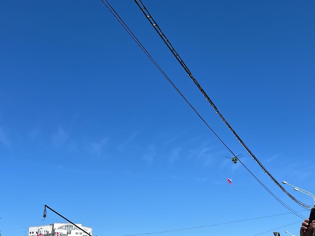 Военные маршем пронесли флаг России.